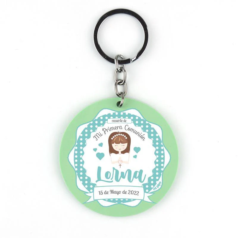Llavero personalizado de metacrilato redondo especial Primera Comunión