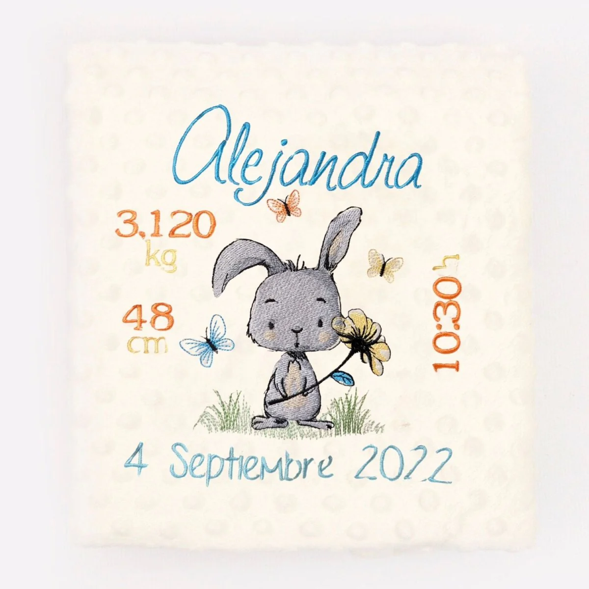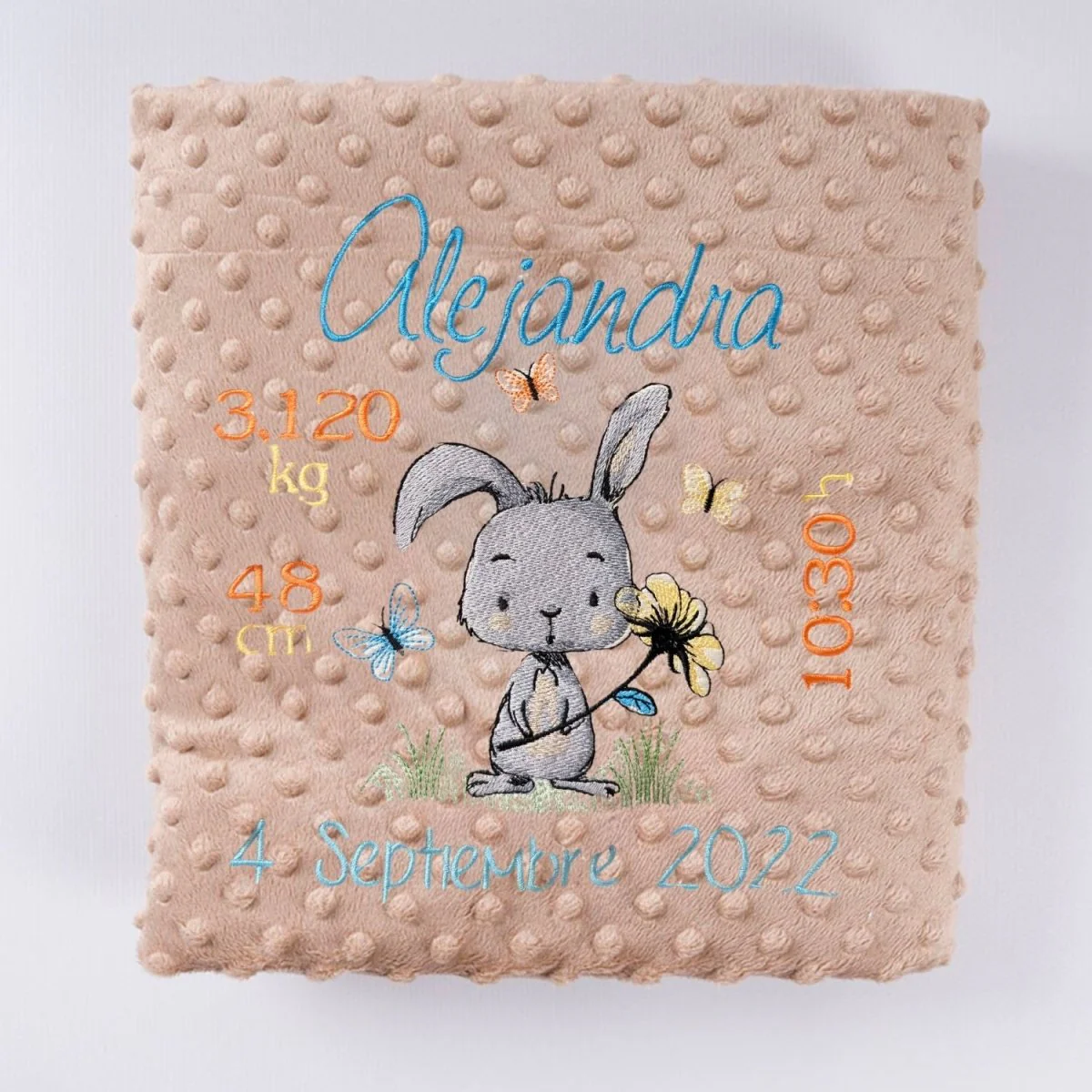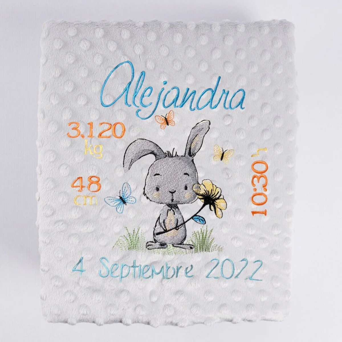 Manta Bebe Datos Nacimiento Conejito Flor