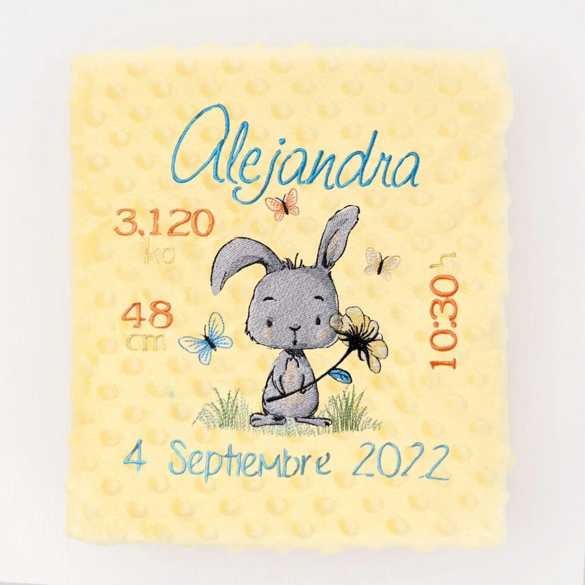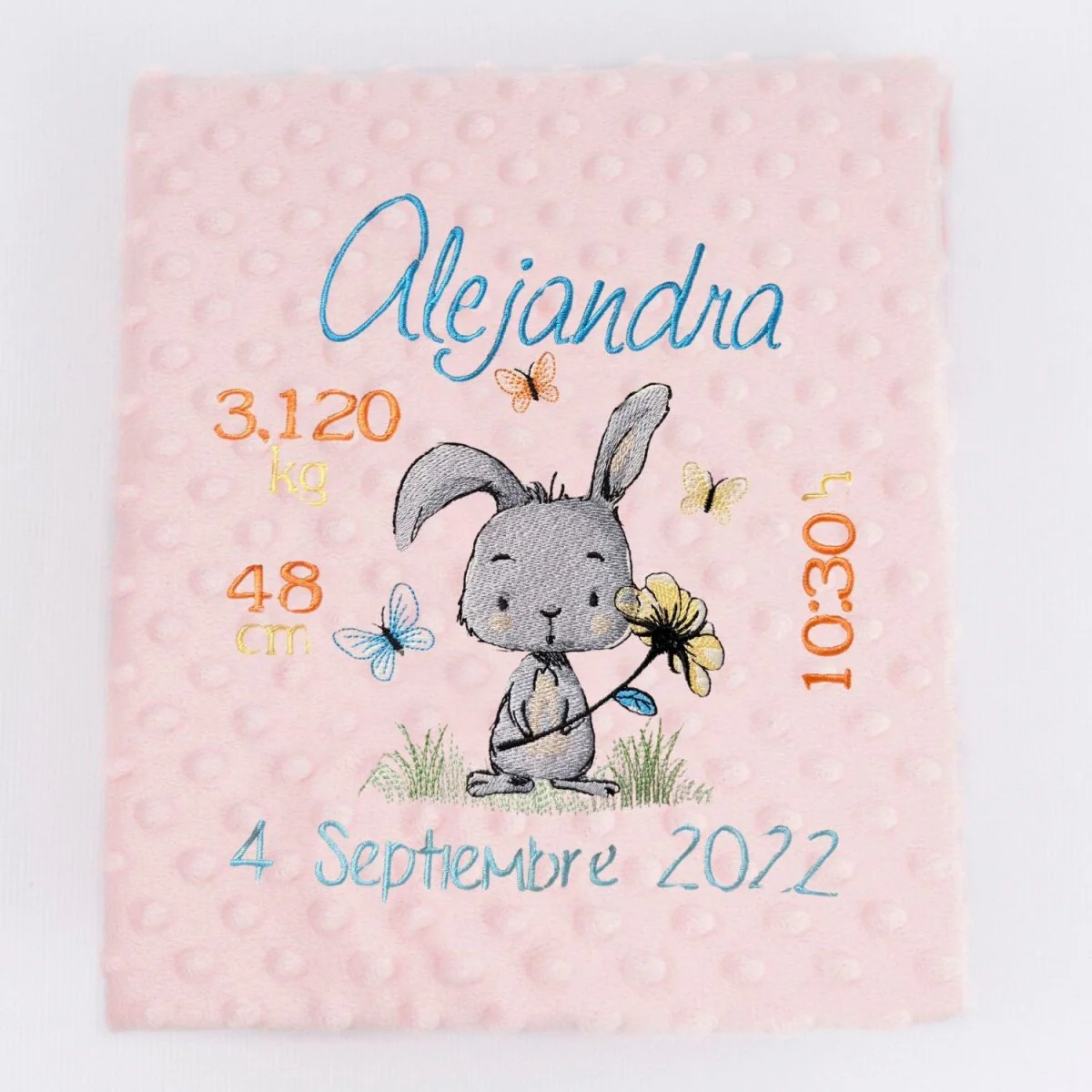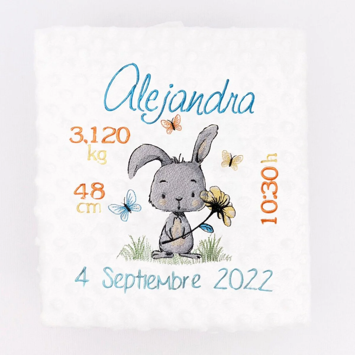 Manta Bebe Datos Nacimiento Conejito Flor