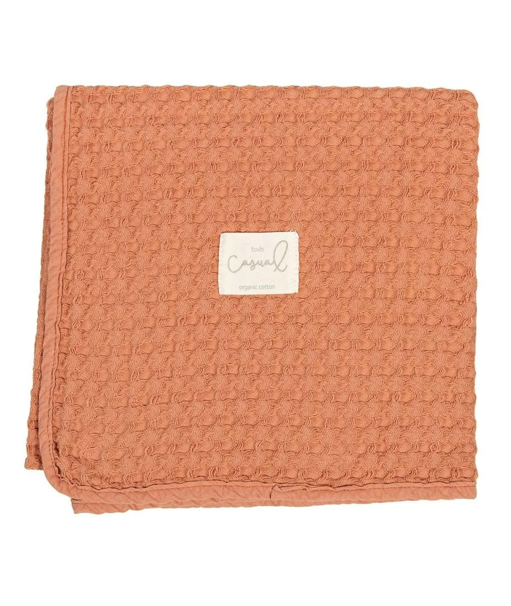 Manta para bebé crochet Bimbi Casual. Confeccionadas son algodón 100% algodón organico Stone Washed.