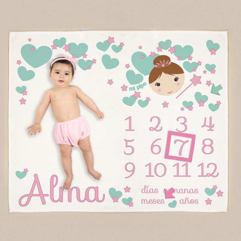 No dejes pasar cada momento desde que nace el bebé. Con esta preciosa manta podrás hacer fotos periódicas para ver con el tiempo el crecimiento del bebé. Un recuerdo muy bonito.