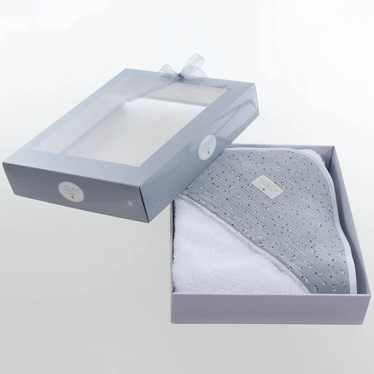 La toalla con capucha que necesita un bebé desde recién nacido para secarlo después de su baño. Presentada en preciosa caja regalo.