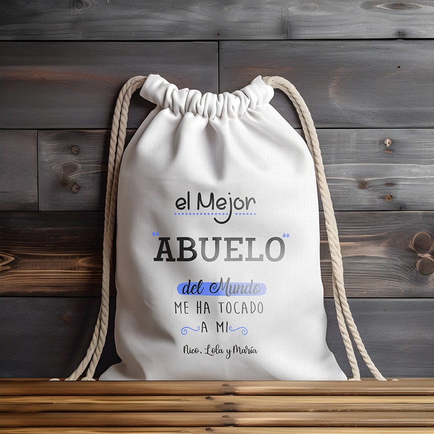 La Mochila de cuerdas con el Mensaje Abuelo utiliza la técnica de impresion directa, garantizando una imagen nítida y duradera con el mensaje «El Mejor Abuelo»