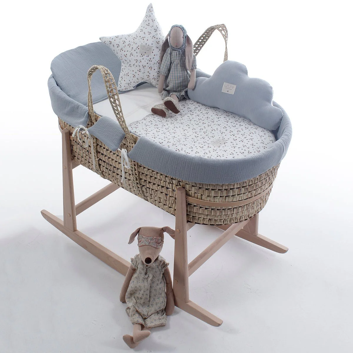 Capazo moisés para bebé de palma con vestiduras de la prestigiosa marca española Uzturre.