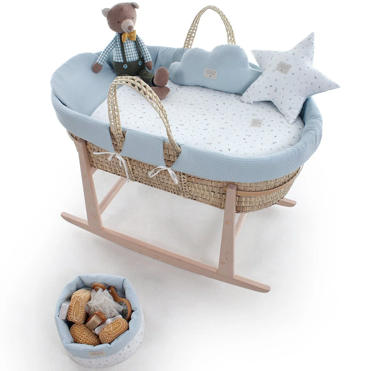 Capazo moisés para bebé de palma con vestiduras de la prestigiosa marca española Uzturre.