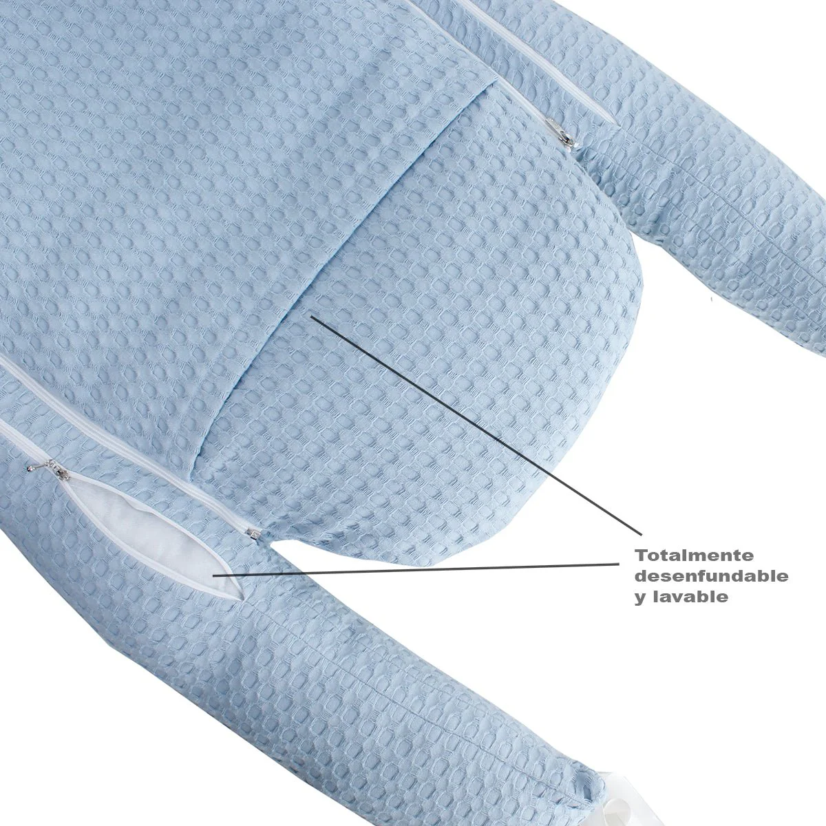 - Totalmente desenfundable con funda de cierre zip para facilitar su lavado.