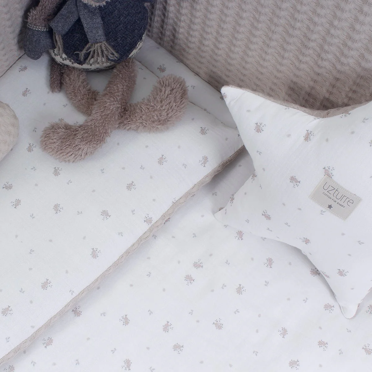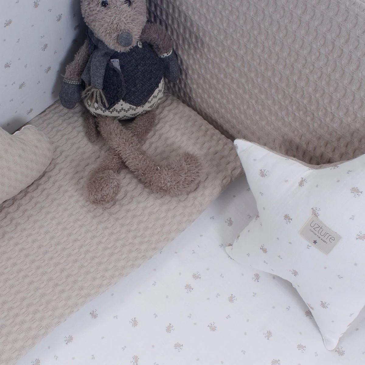 ¡Protege y decora la cuna de tu bebé con la funda nórdica+ Protector Clea Uzturre! Hecho en España, este conjunto clásico y atemporal es una opción dulce y segura para tu pequeño. ¡Añade un toque de encanto y calidad a la habitación de tu bebé con Uzturre!