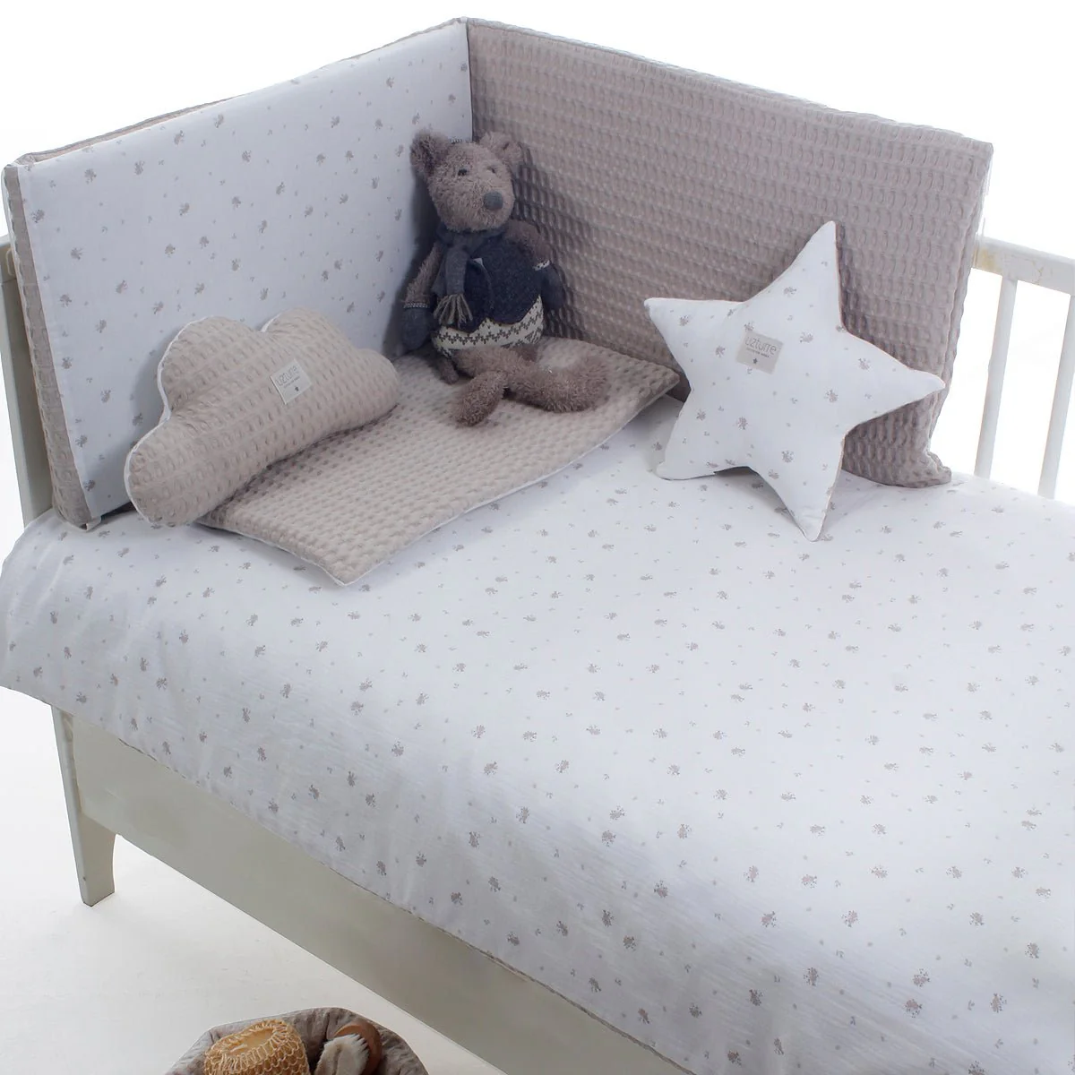 Pack de funda nórdica + Chichonera protector para cunas. Los cojines y peluche no van incluidos en el precio. Se venden aparte.
