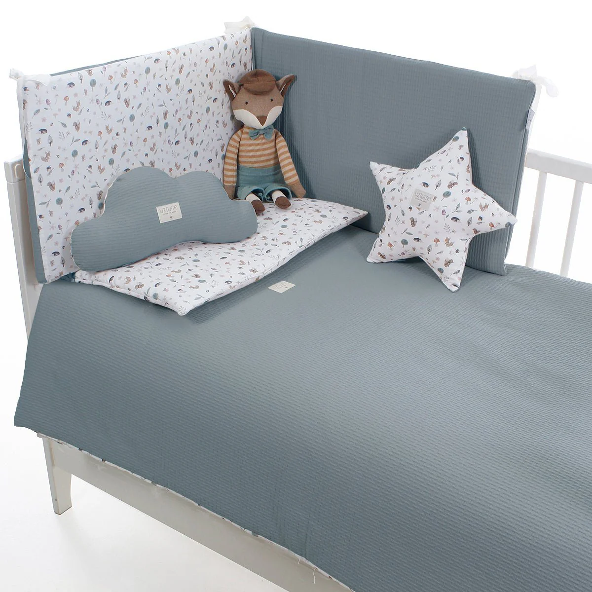 ¡Protege y decora la cuna de tu bebé con la funda nórdica+ Protector Roque Uzturre! Hecho en España, este conjunto clásico y atemporal es una opción dulce y segura para tu pequeño. ¡Añade un toque de encanto y calidad a la habitación de tu bebé con Uzturre!