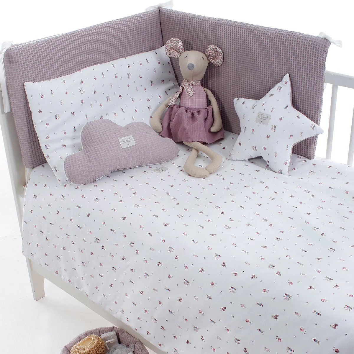 La colcha para cuna y protector barrotes cuna alegrarán la cuna del bebé con la mejor calidad de confección, acabados impecables y los mejores tejidos para respetar la delicada piel del bebé.