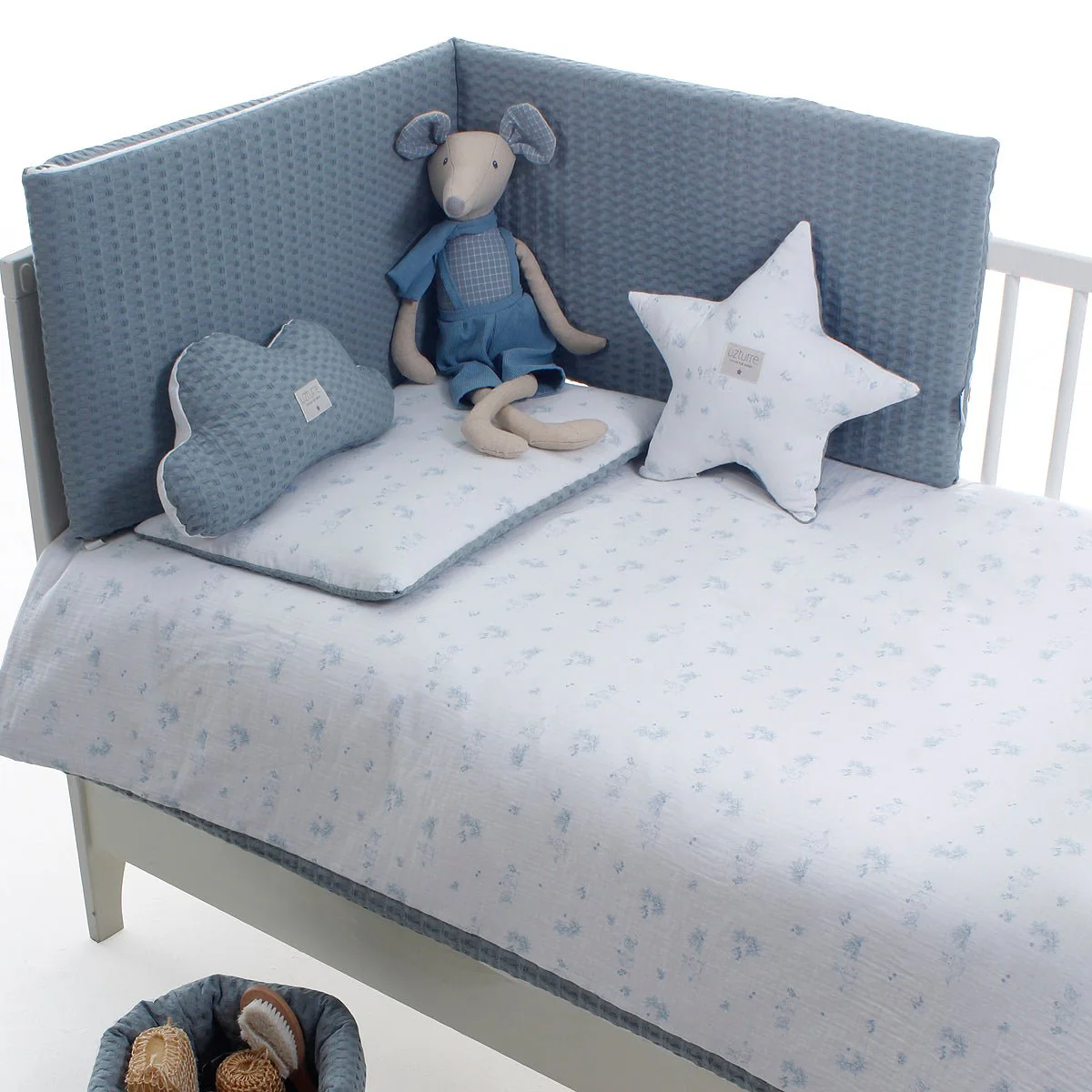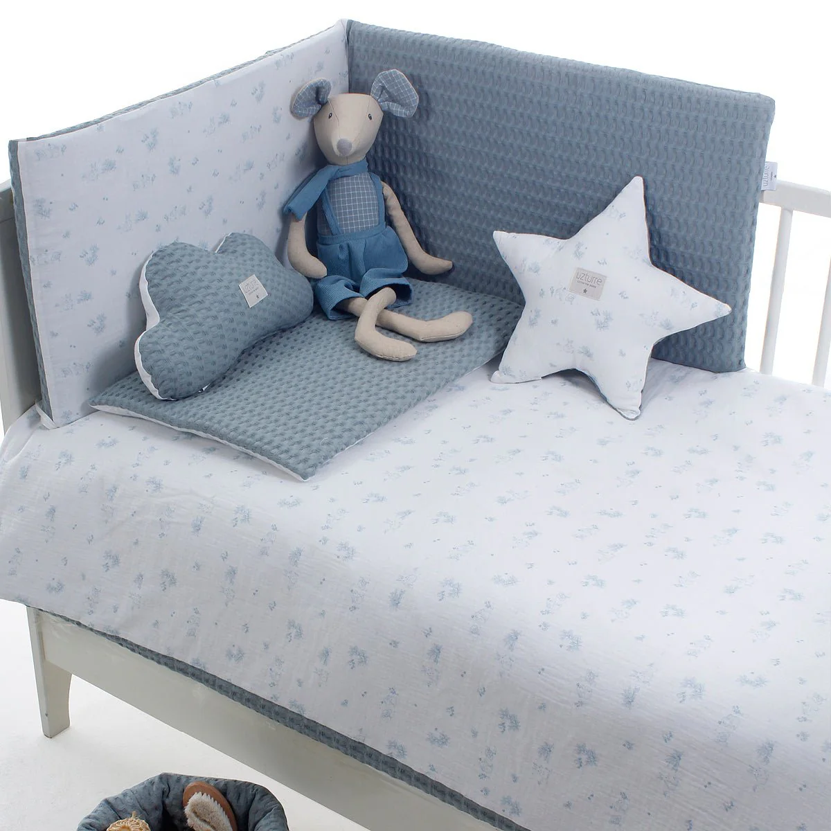 Pack de funda nórdica + Chichonera protector para cunas. Los cojines y peluche no van incluidos en el precio. Se venden aparte.