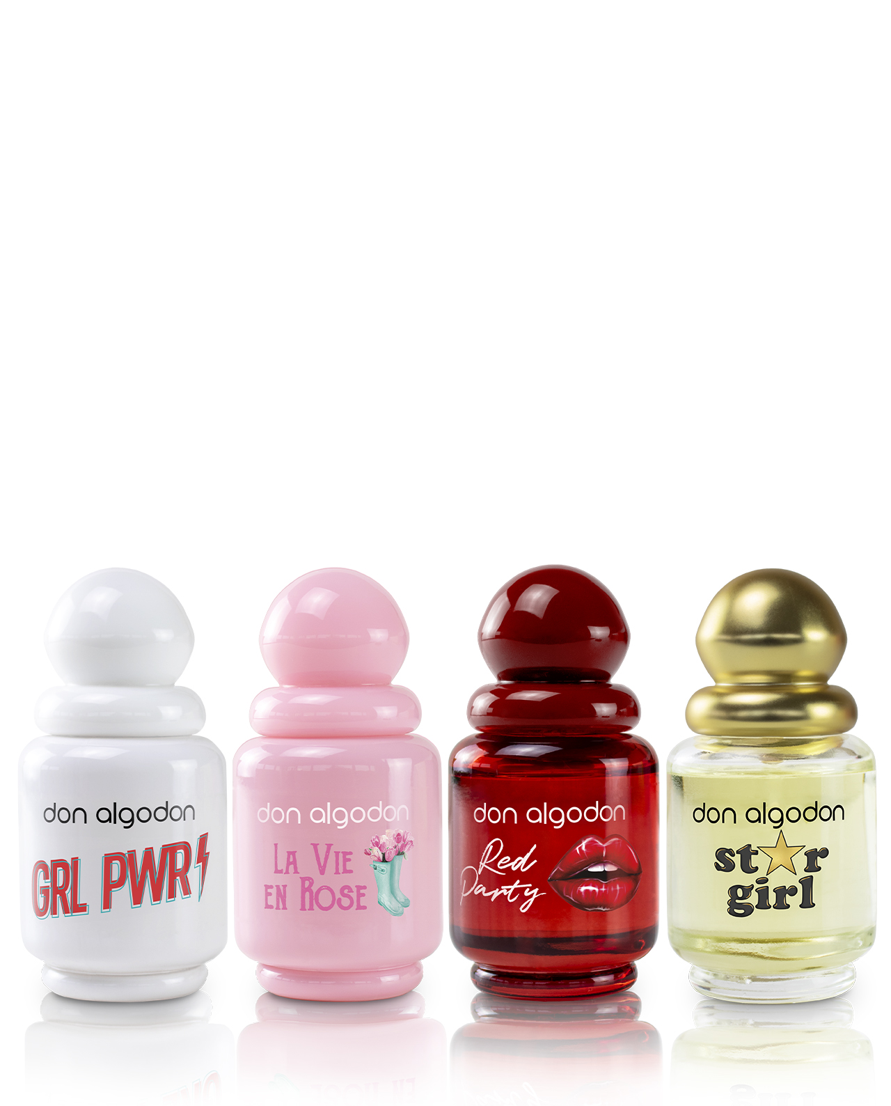 Descubre el Pack 4 Eau De Toilette Minis Mujer de Don Algodón. Incluye Girl Power, La Vie en Rose, Red Party y Star Girl, cada una en formato mini de 30 ml. Fragancias únicas y versátiles para cada ocasión, diseñadas para mujeres que quieren destacar.