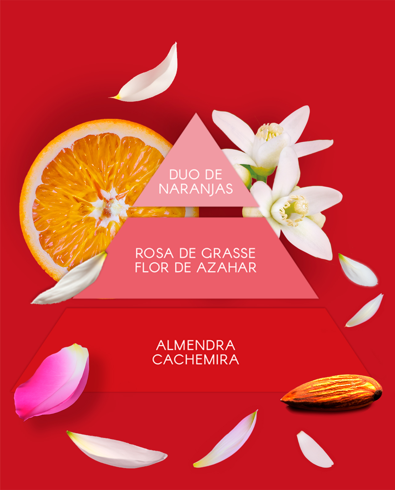 Audaz y seductora, con notas de naranja, rosa de Grasse y almendra, ideal para las noches llenas de energía.