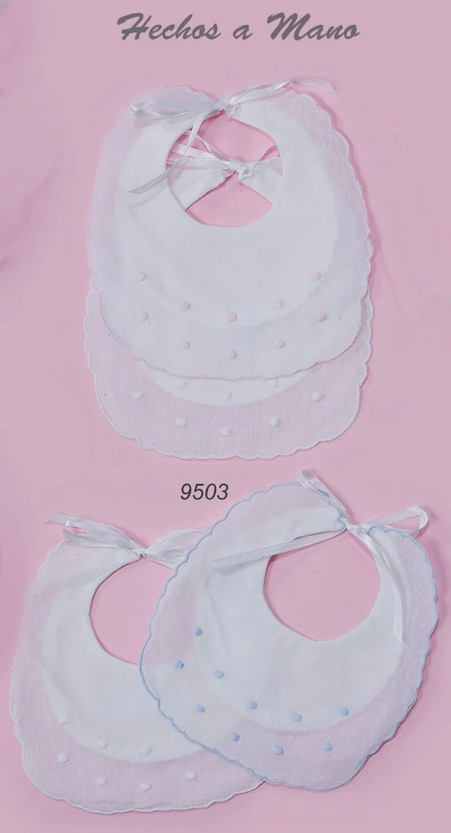 Pack de 2 baberos para bebé con tela de batista y topos bordados. Hechos a mano