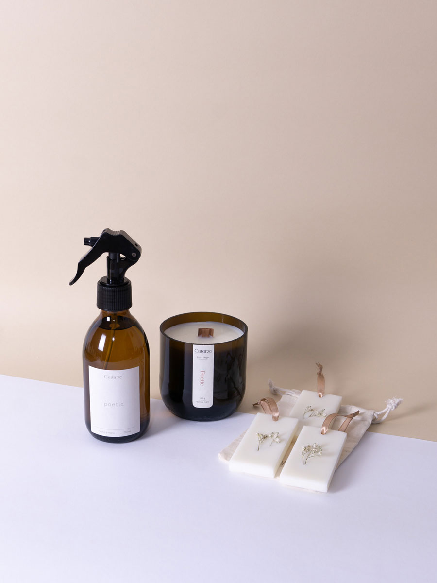 Pack Poetic | Ambientador + Vela + Ambientador de Armario | Dos tamaños