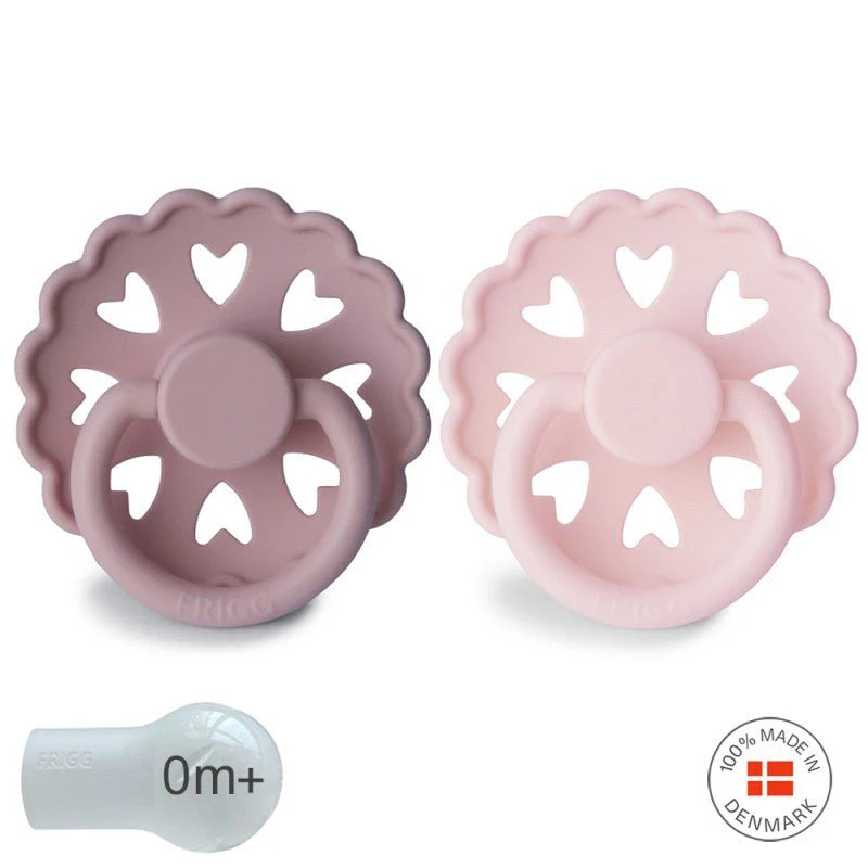 Precioso pack de 2 chupetes marca Frigg, de fabricación en Dinamarca.