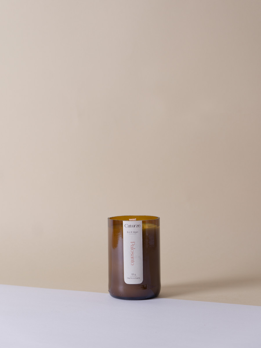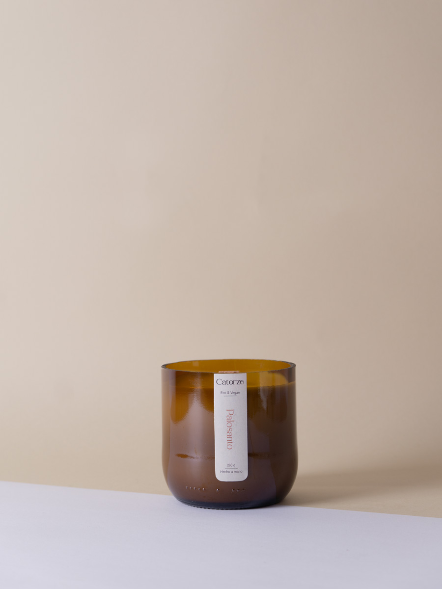 Aroma leñoso y amaderado pero que al mismo tiempo tiene un olor dulce y cítrico.| Vela artesanal en Botellas Recicladas.