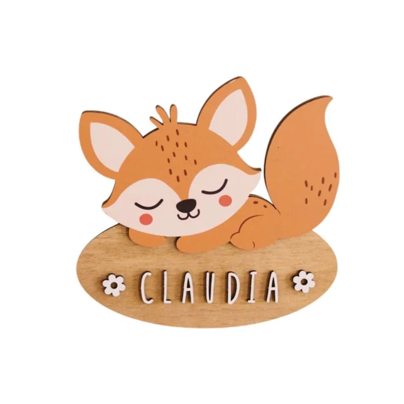 ¡Decora cualquier puerta de dormitorio, armario, cabezal de cama, cuna… con esta preciosa placa personalizada de Zorro! Perfecta para tu puerta, tu escritorio o tus muebles favoritos, esta placa chula personalizada con el nombre. Con un diseño divertido y colorido, es el complemento ideal para hacer tu espacio totalmente tuyo. ¡Crea tu propia placa única y muestra tu estilo! Ideal también como regalo sorpresa para amigos especiales. ¡Que comience la diversión decorativa!