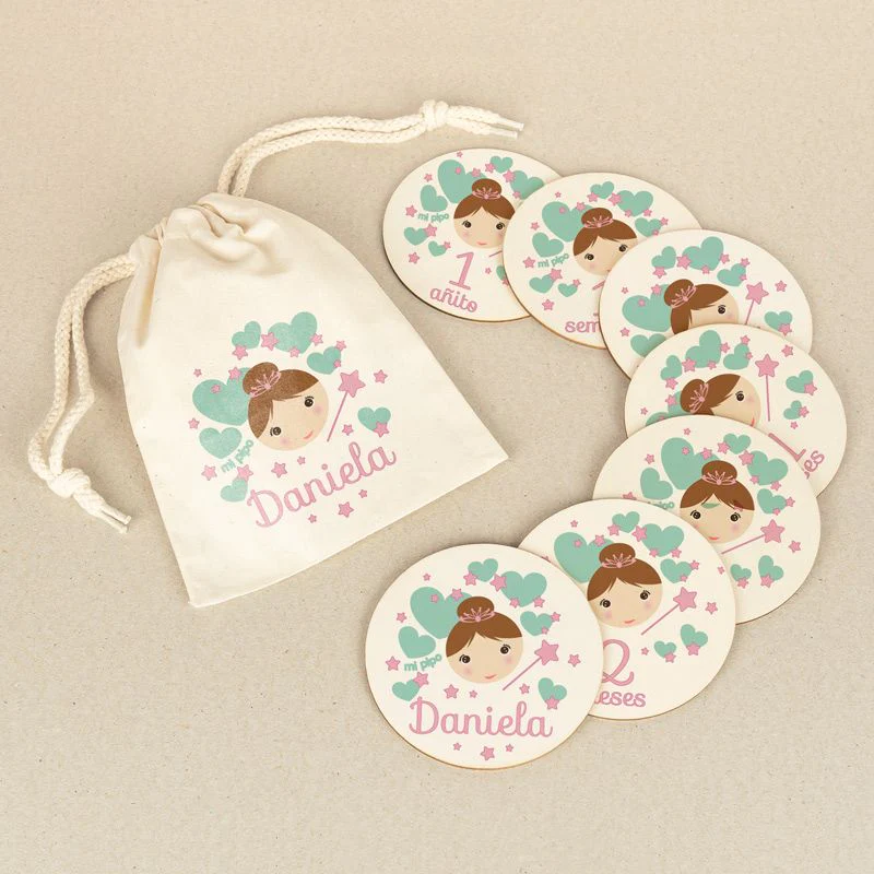 Tarjetas meses bebe confeccionadas con madera decorada a doble cara con vinilo.