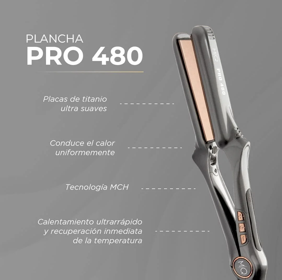 Plancha Profesional MQ PRO 480 ofrece un acabado profesional con control total de la temperatura, cuidando la estructura del cabello y permitiendo trabajar con rapidez y precisión.