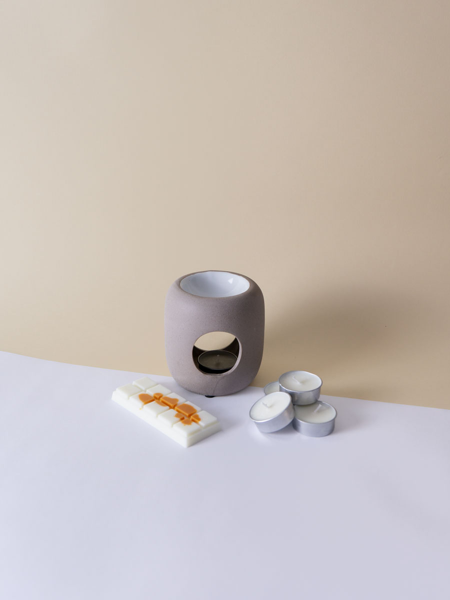 Quemador de cera artesanal ideal para wax melts y velas de té. Una pieza decorativa elegante para aromatizar tu hogar con estilo.