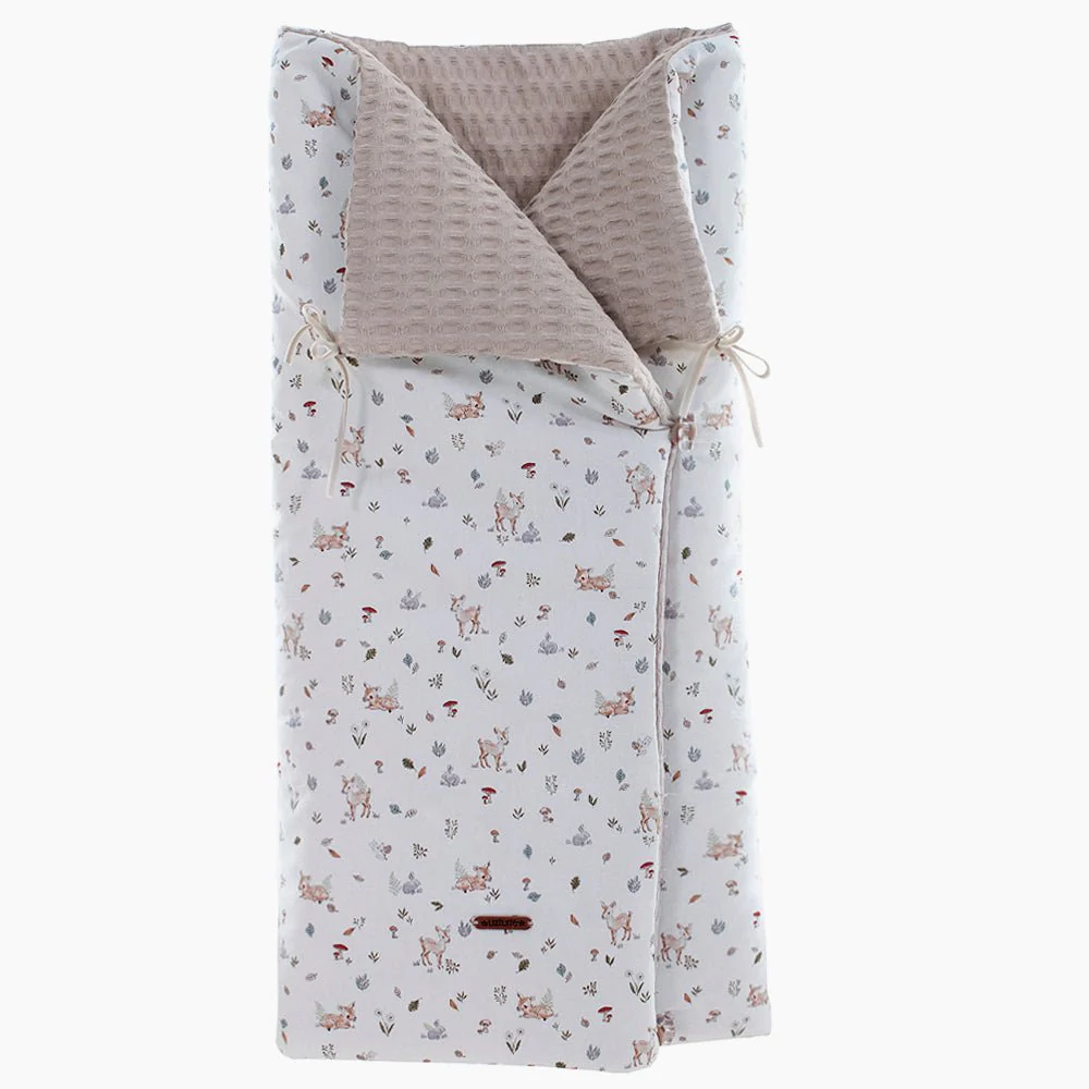 Una preciosidad de saco arrullo que se puede abrir para usarlo como mantita. Mantiene a tu bebé cálido y protegido con un suave tejido polar, perfecto para arrullar y arropar con facilidad.