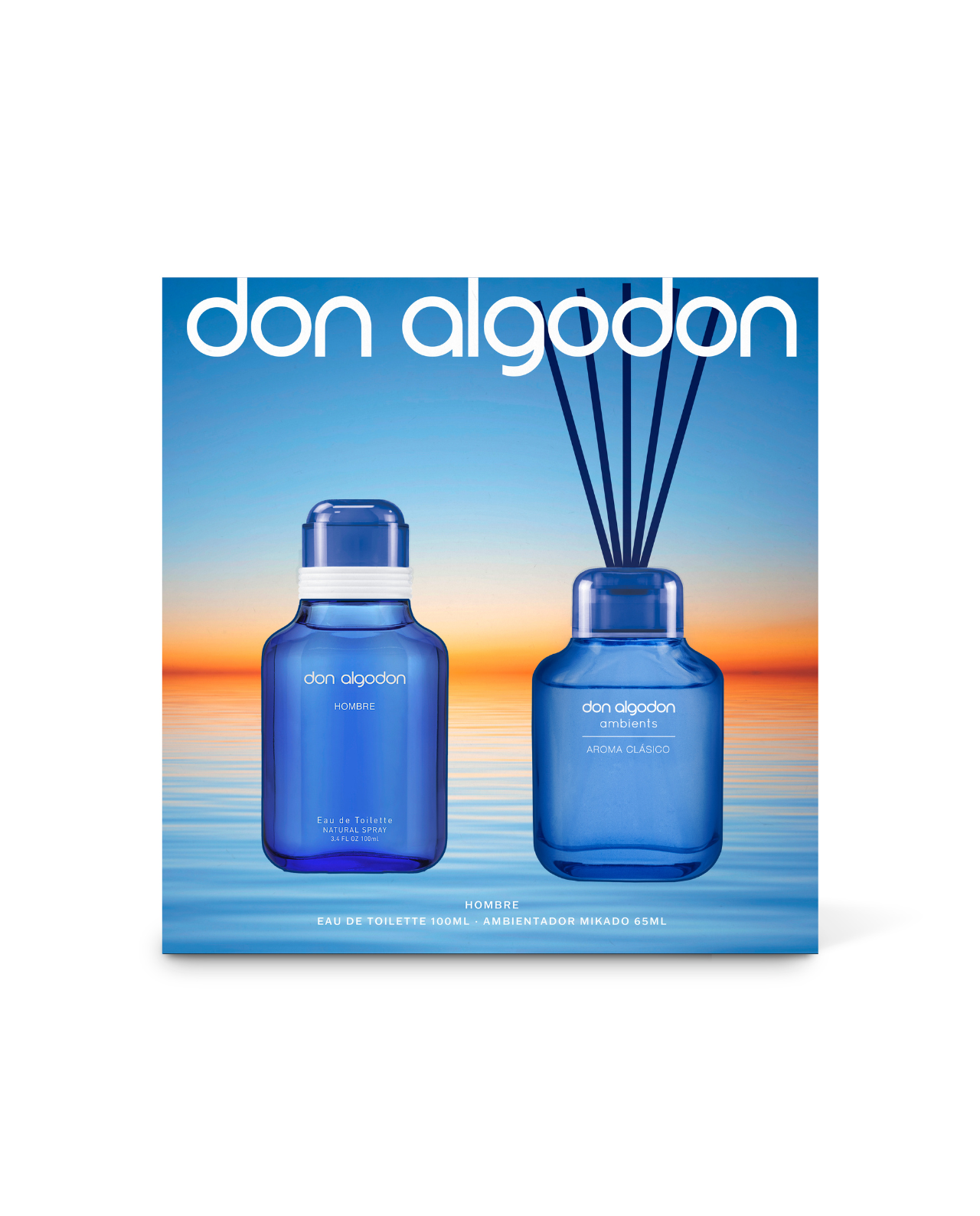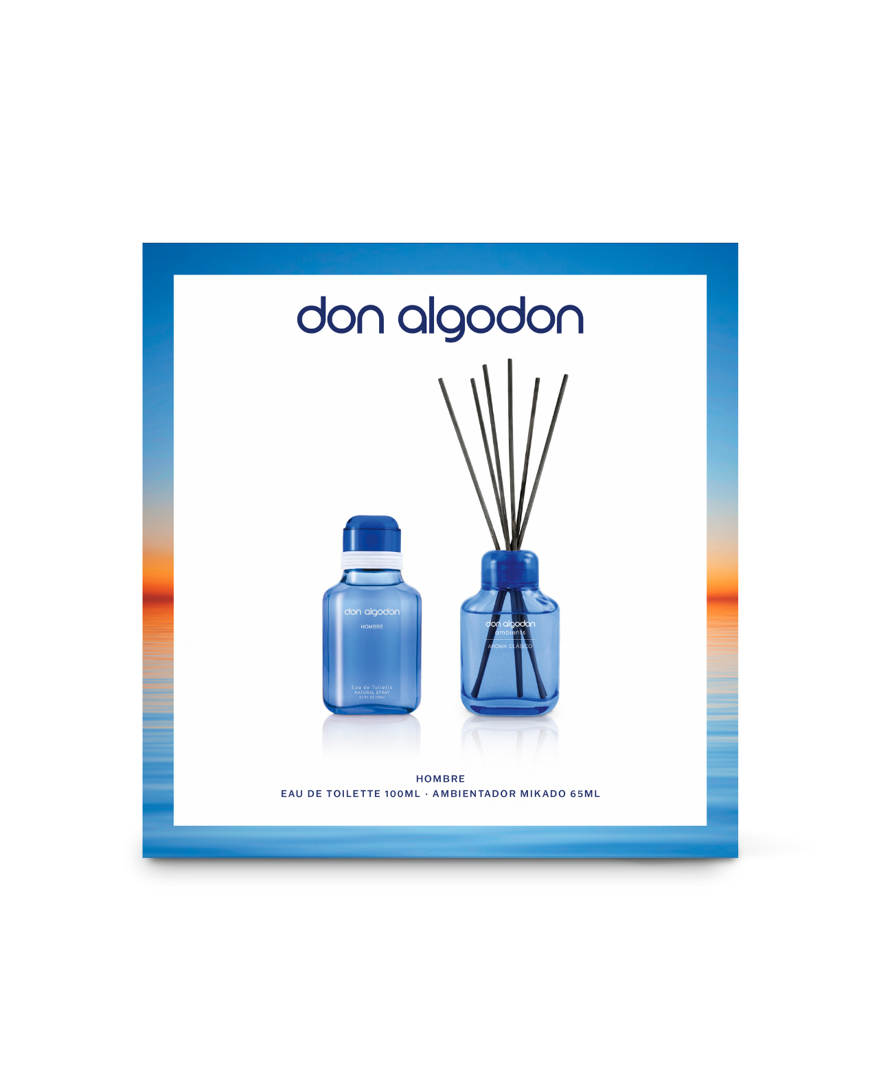 Set Don Algodón Hombre con Eau de Toilette 100 ml y ambientador Mikado 75 ml con el aroma clásico y fresco de Don Algodón. Un regalo perfecto para hombres que buscan elegancia dentro y fuera de casa.
