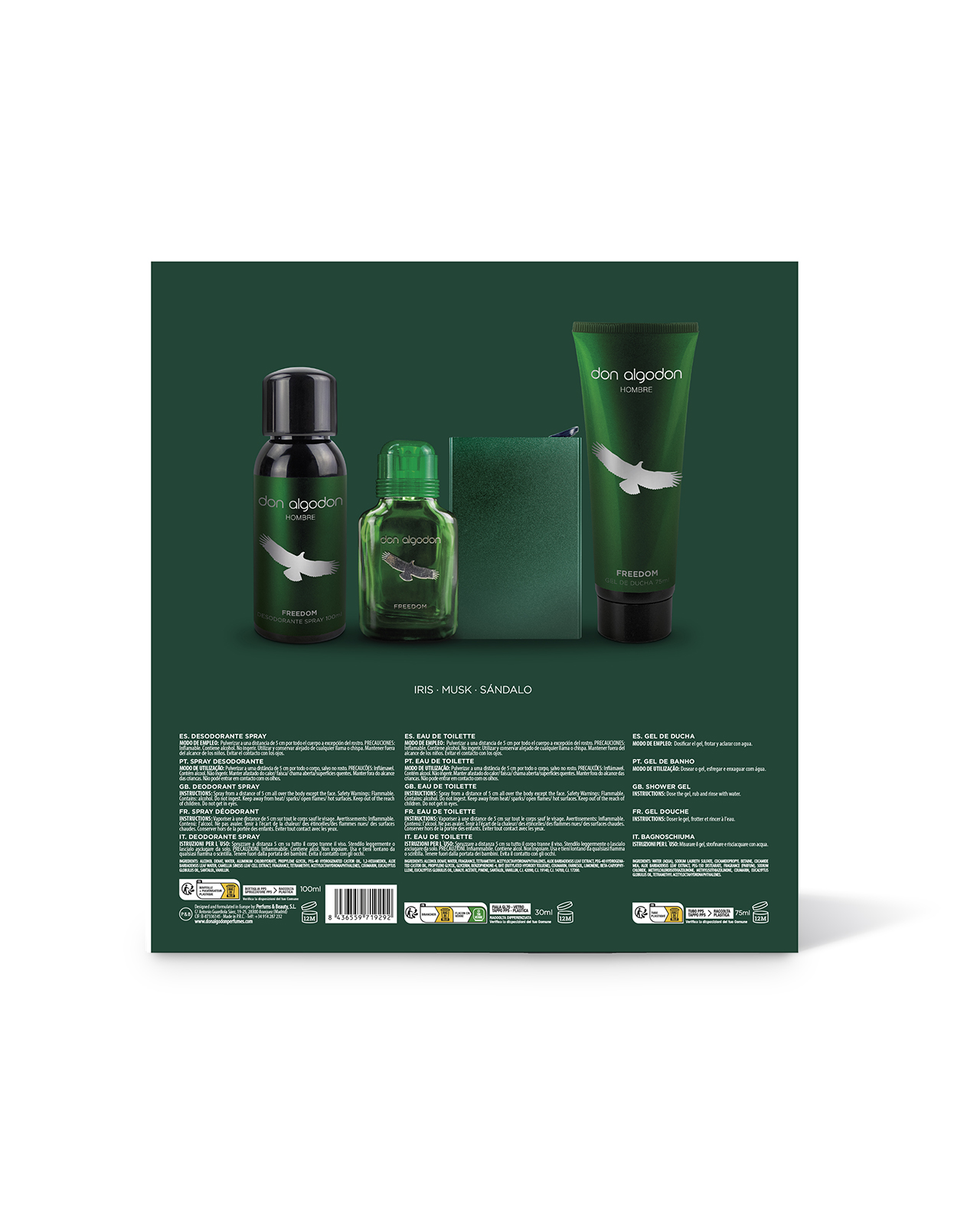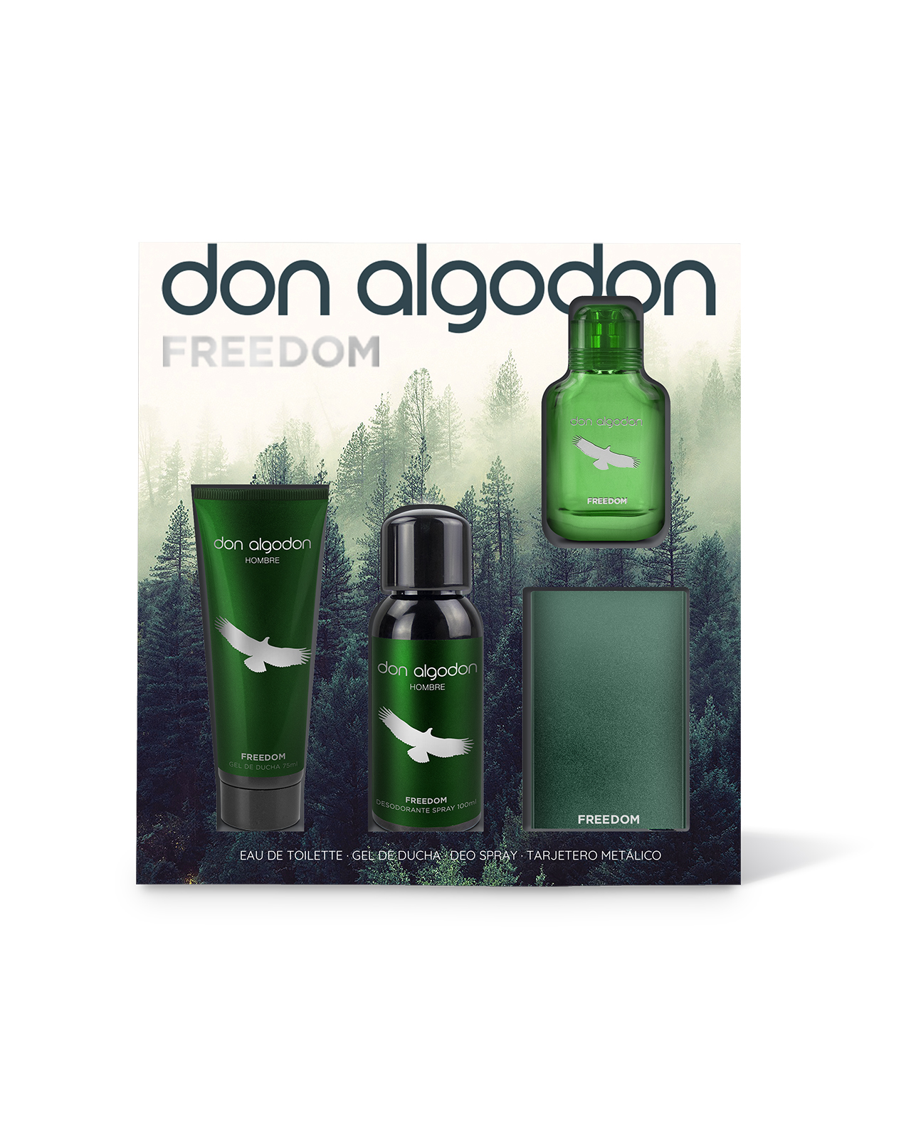 Libera tu espíritu aventurero con el Set de Regalo Freedom de Don Algodón. Incluye una colonia Freedom 30 ml, gel de ducha 75 ml, desodorante en spray 100 ml y un tarjetero metálico. Todo lo que necesitas para sentir la llamada de la naturaleza en tu día a día.