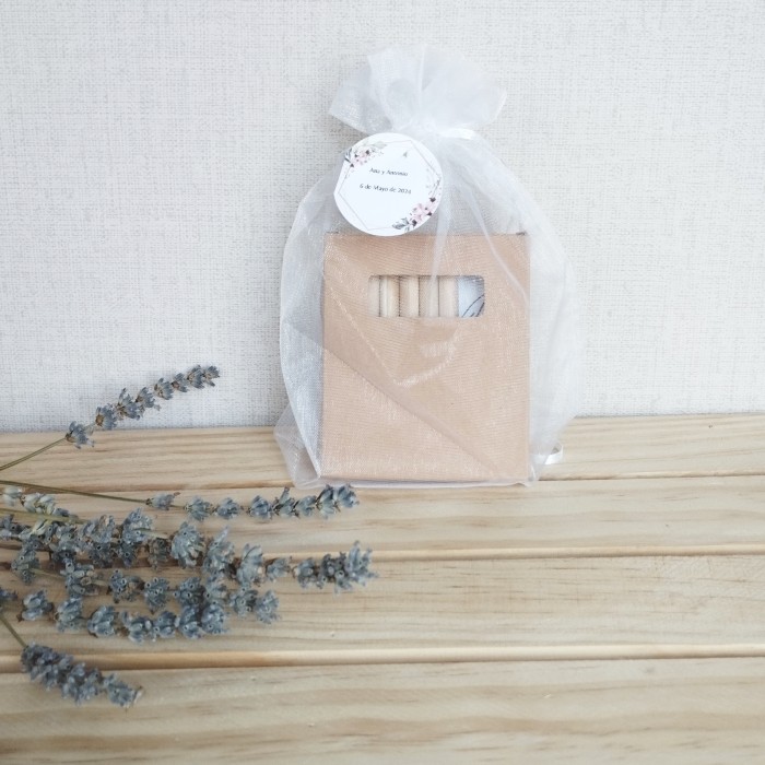 Set compuesto por una caja con 6 lápices de colores, un sacapuntas y un block con 20 dibujos para colorear