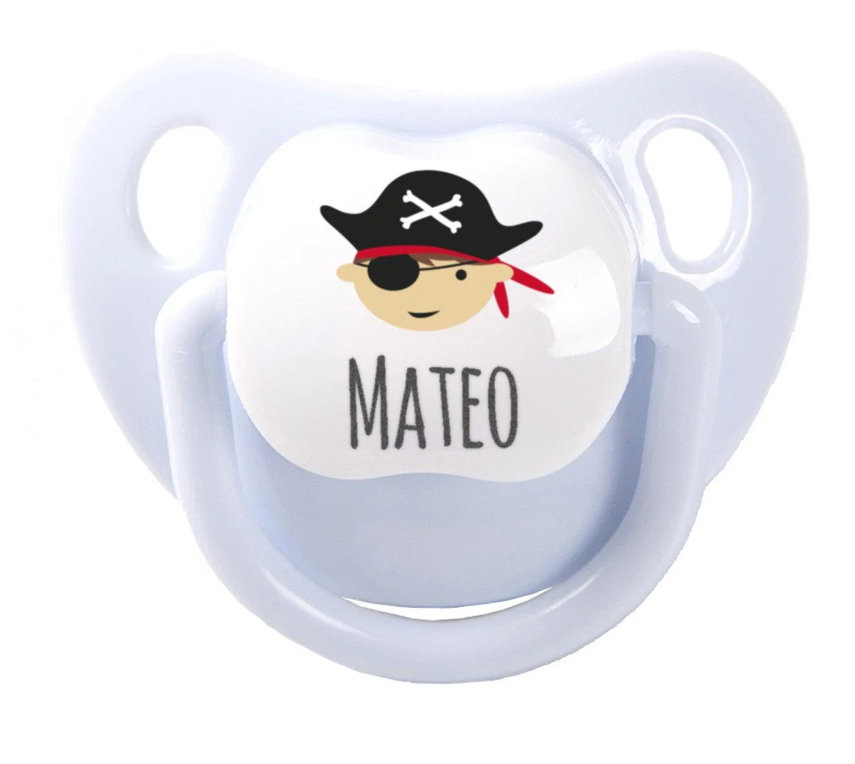 Superpack del Pirata MIPIPO compuesto por: Mochila, Babero, chupete, biberón, cajita portachupete.