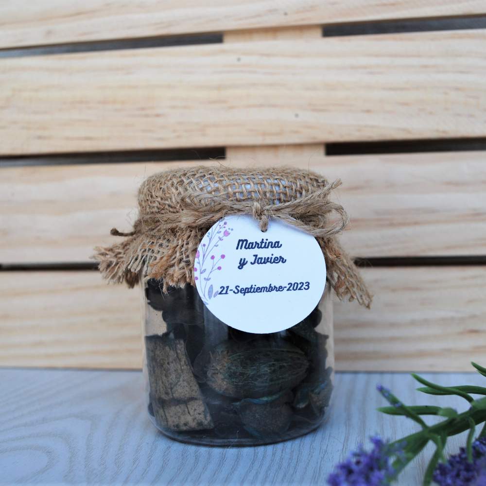 Tarro de cristal decorado relleno de flores secas aromatizadas