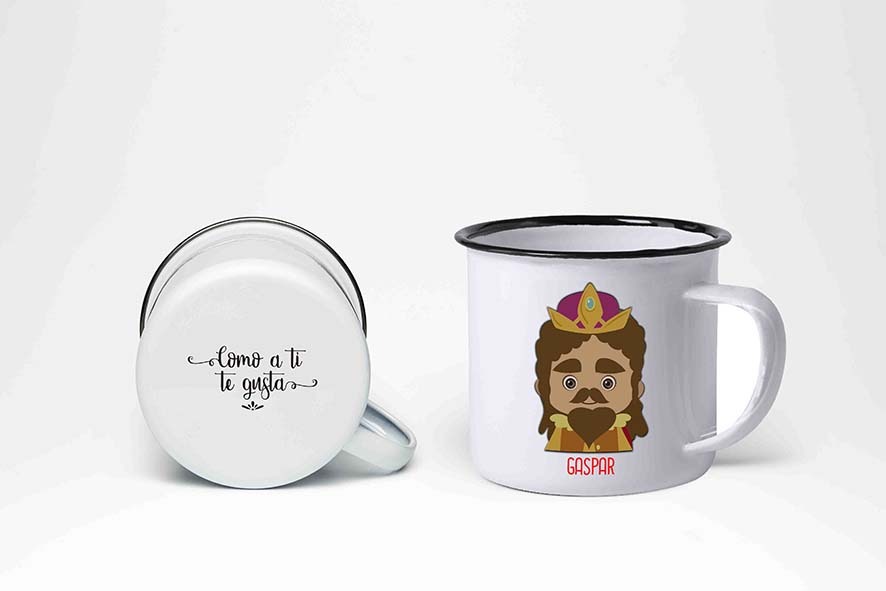 Taza de cerámica para el Rey Gaspar. La puedes usar para dejarle su pequeño aperitivo en la noche mágica de Reyes Magos y como recuerdo todo el año de lo que vendrá el 5 de enero. Rellena la casilla del nombre con GASPAR para que lleve el nombre de tu Rey Mago favorito.
