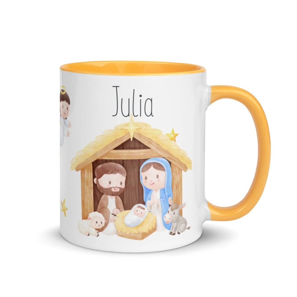 Taza navideña personalizada con la icónica escena del Belén de Nanetes. Perfecta para disfrutar de bebidas calientes durante las fiestas mientras lucen tus valores familiares. Un regalo significativo que combina funcionalidad y espíritu navideño, ideal para sorprender a seres queridos con algo único y memorable.