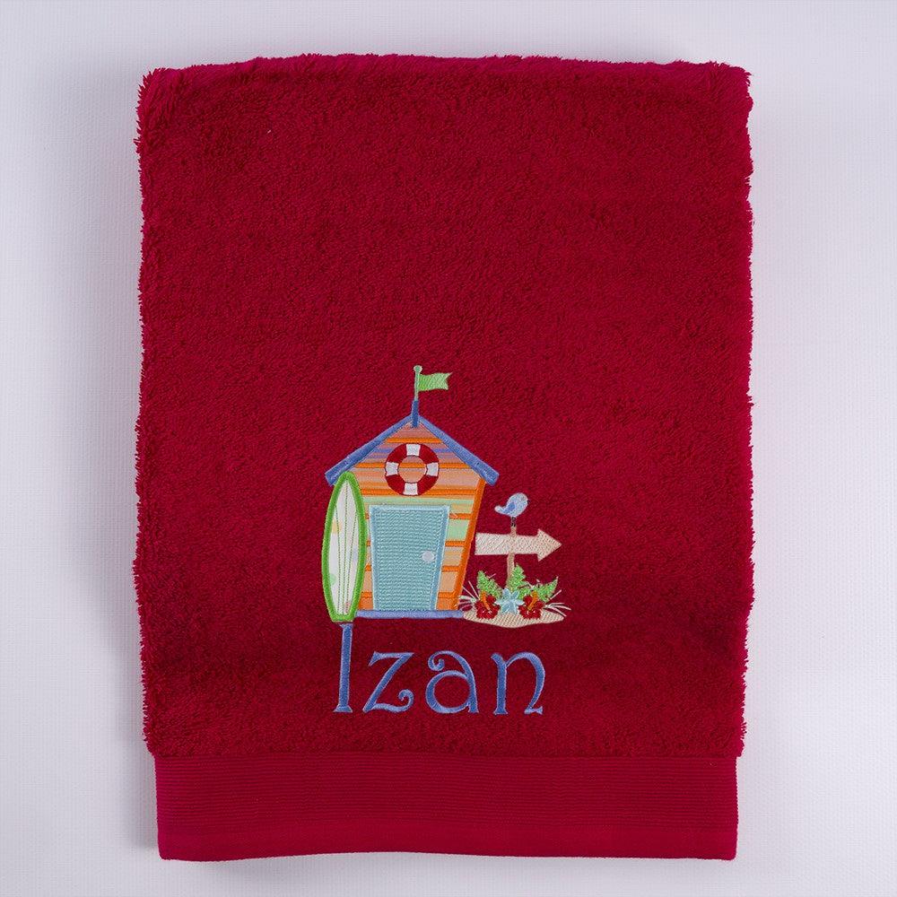 Toalla Personalizada bordada con el nombre y un aplique de tela.