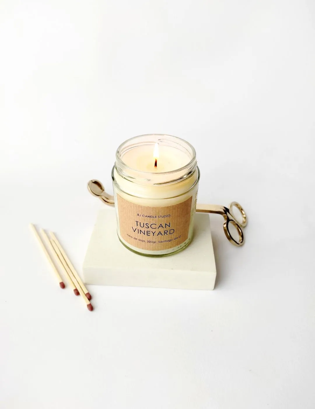 La vela de soja Tuscan Vineyard, es una vela de fragancia afrutada, inspirada en la Toscana. Huele a un paseo entre viñedos al atardecer.