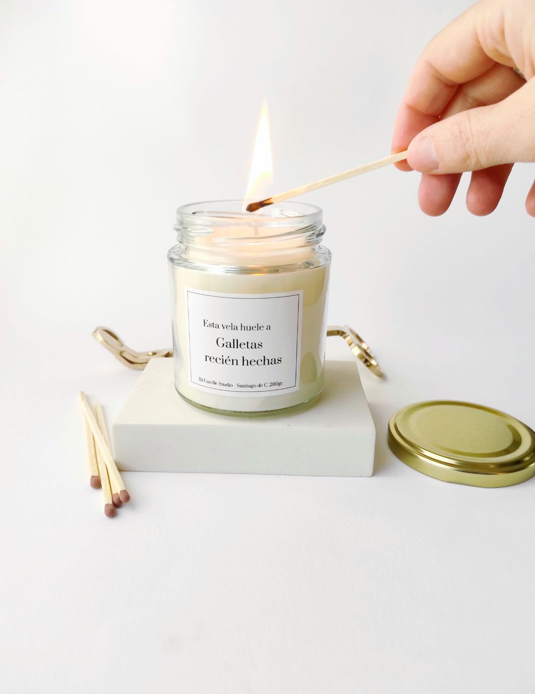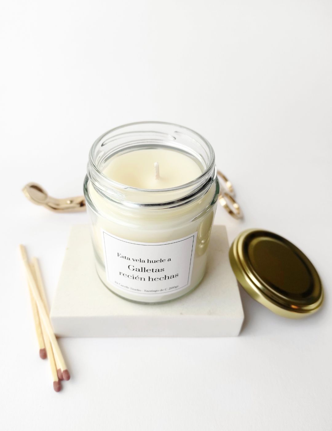 Vela de cera de soja con aroma a galletas recién horneadas. Dulce, cálida y perfecta para crear un ambiente acogedor y reconfortante.